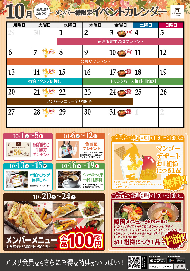 【10月度】メンバー様限定イベントカレンダー|【公式】姫路ラブホテル|カノンリゾート(Canon Resort)|姫路南店